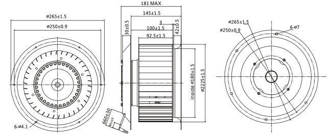 ①技术参数:风轮直径为225mm,由4极和6极额定电压为230/400V,频率50Hz,分单相电容运转和三相异步运转电机组成,可提供1800m3/h和1300m3/h的风量要求。