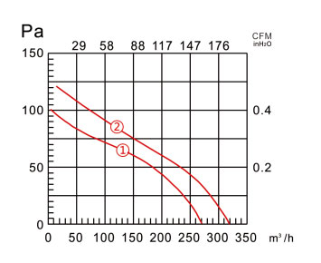 ①性能参数:额定电流在0.22~0.25A,额定电压230V,输入功率为35W,最大风量可达270/320m3/h,产品转速2800/3200RPM,电容为1uf,工作噪音低于60dB(A)