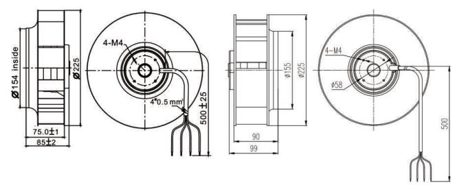 ②组成部件:高效外转子交流电机、PA66增强塑料叶轮、免维护深沟球滚珠轴承、静电粉末喷塑转子。