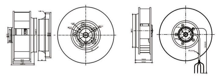 ②组成部件:高效外转子交流电机、后倾式圆弧形铝合金叶轮、免维护深沟球滚珠轴承、静电粉末喷塑转子。